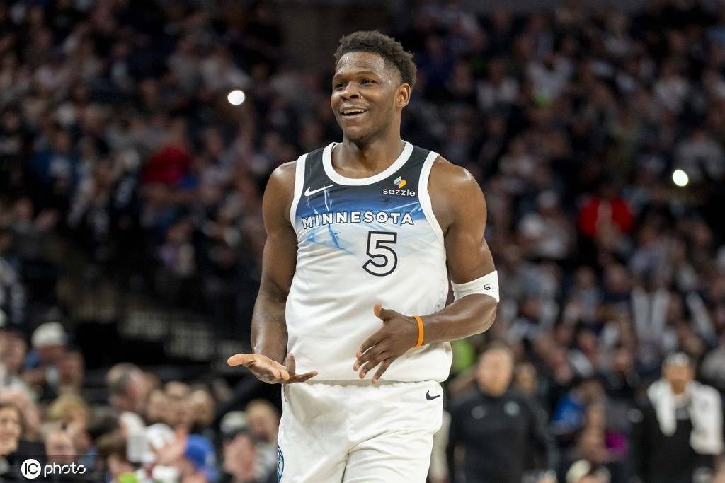 森林狼队首发:安东尼-爱德华兹、贾登-麦克丹尼尔斯、朱利叶斯-兰德尔、丹特-迪文琴佐、鲁迪-戈贝尔
