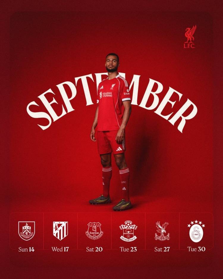 利物浦官方晒9月赛程:18日欧冠主场vs马竞 20日默西塞德德比
